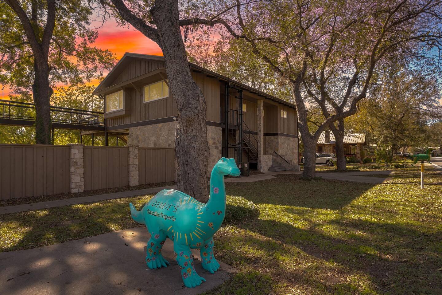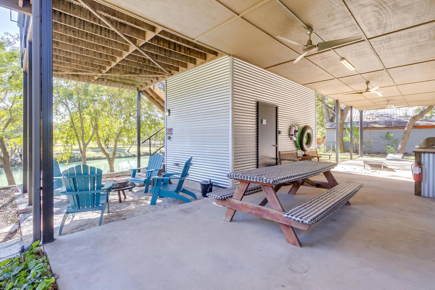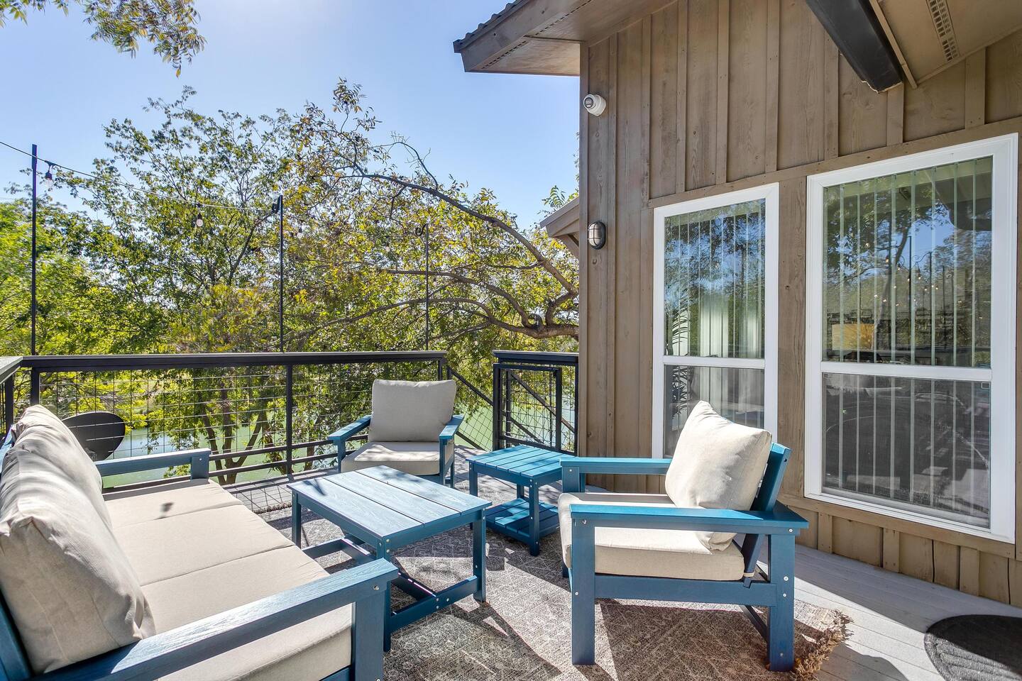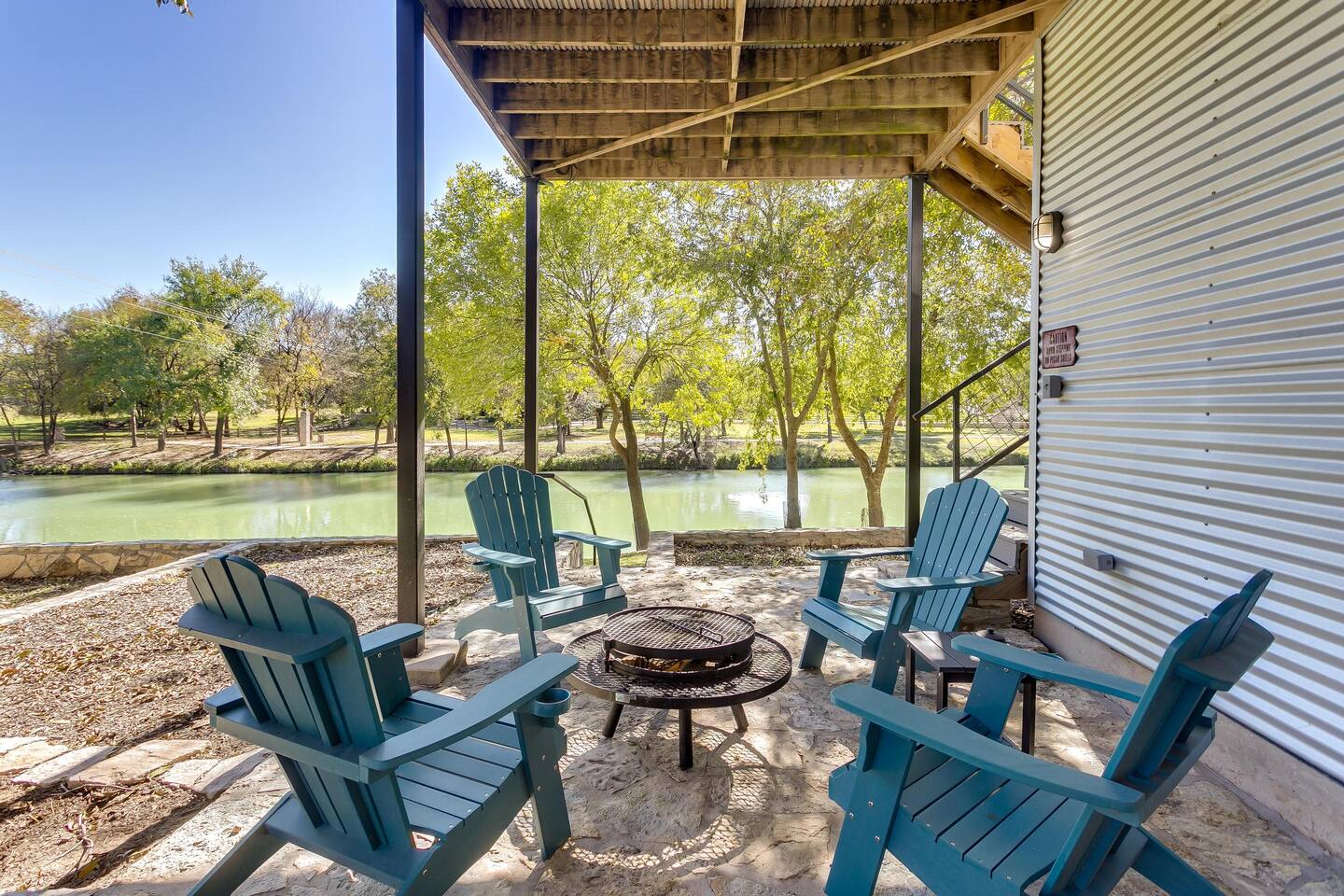 This unique home features two connected dwellings, joined by a scenic upstairs walkway, offering the perfect blend of privacy and shared space—ideal for families, couples, or friends traveling together. Main Living Space Highlights: • Two serene bedrooms, both with stunning views of the tranquil Paluxy River • Fully stocked kitchen—everything you need to cook at home • Keurig coffee maker with complimentary pods for your morning brew • Cozy living room with a 65-inch Smart TV—perfect for movie nights • Fun games for a relaxed evening in • Primary bedroom with a plush king bed, smart TV, and large walk-in closet • Spa-like primary en-suite bathroom with dual shower heads • Second bedroom with a comfortable queen bed and dedicated workspace • Second full bathroom with a relaxing bathtub Highlights of the Second Dwelling – “The Casita”: • Inviting queen-size bed for restful nights • Smart TV for streaming your favorites • Keurig coffee maker with pods for convenience • Private workspace—ideal for remote work or writing with a view • En-suite bathroom with a sleek walk-in shower • Private balcony overlooking the river—your own peaceful escape Outdoor Amenities: • Private access to the beautiful Paluxy River • Great fishing right from the backyard • Float and unwind with two provided innertubes • Cornhole for a little friendly competition • Wood-burning fire pit—first bundle of firewood included! • Outdoor kitchen with propane grill and sink for riverside meals • Picnic table perfect for alfresco dining • Balcony with outdoor seating to soak in the views and fresh air