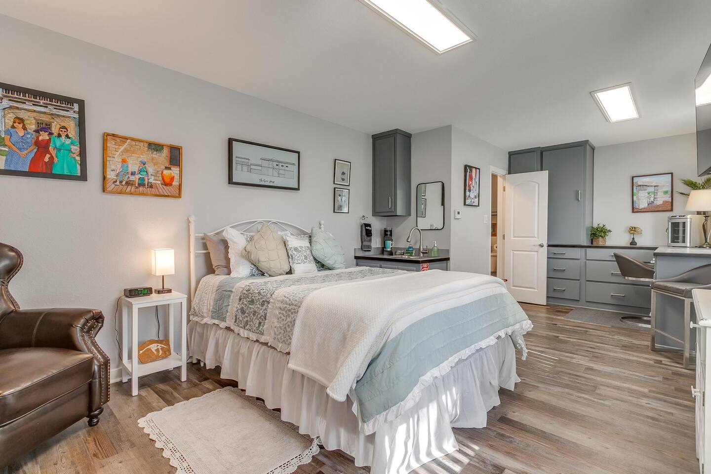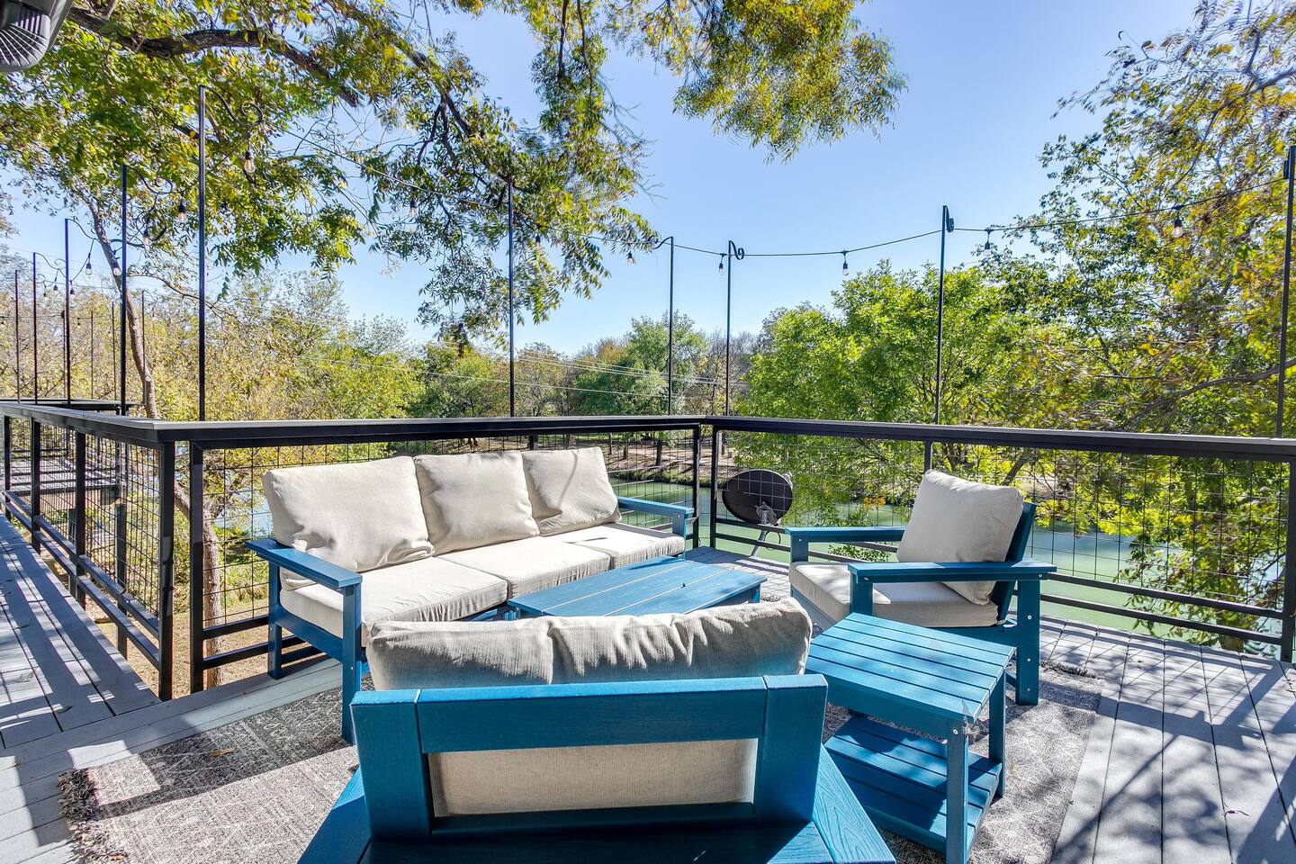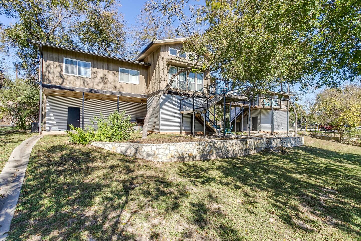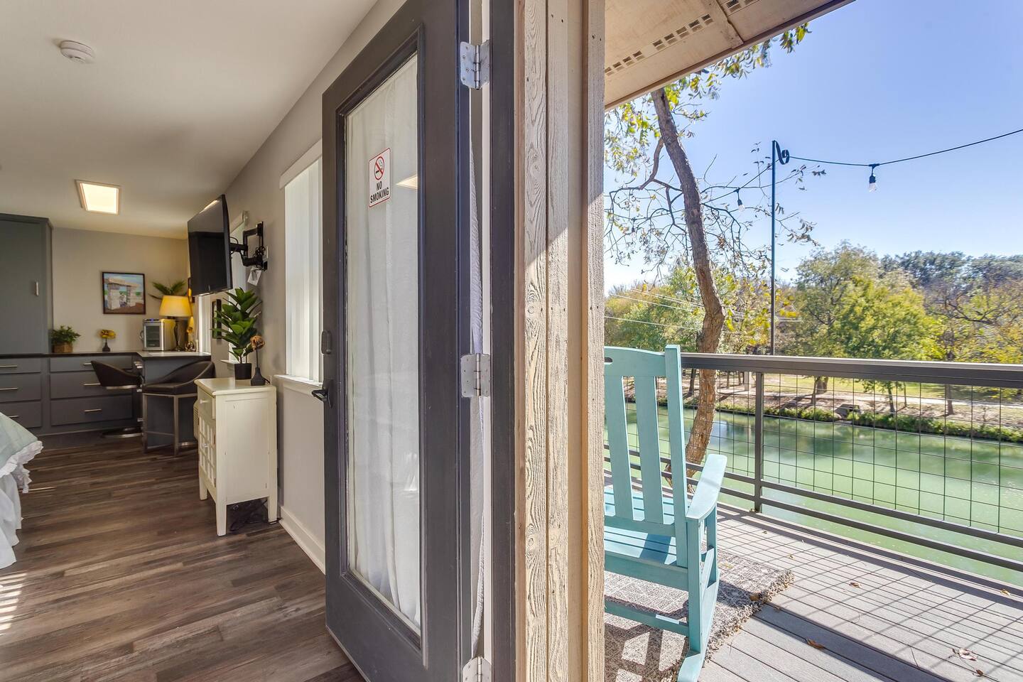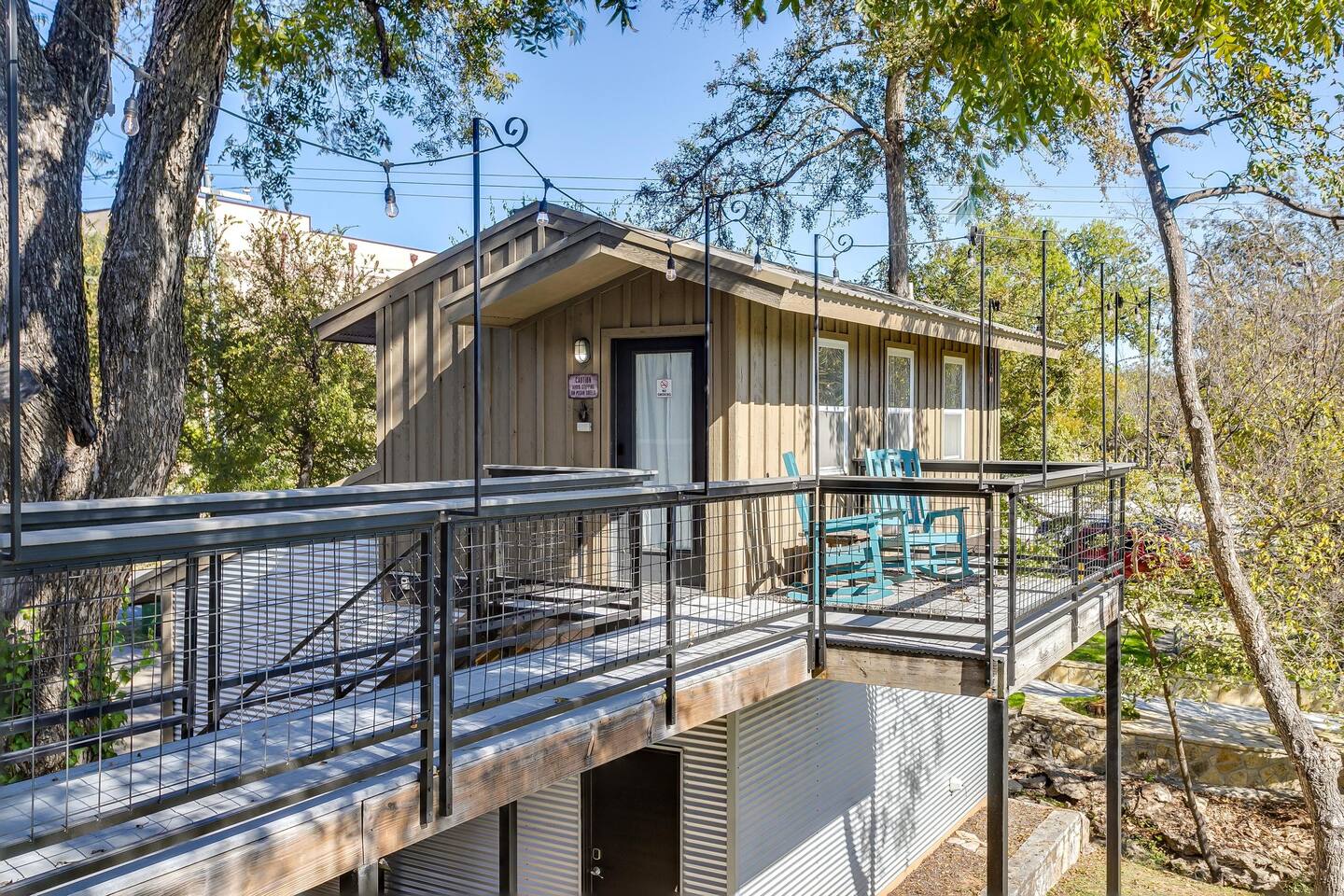 This unique home features two connected dwellings, joined by a scenic upstairs walkway, offering the perfect blend of privacy and shared space—ideal for families, couples, or friends traveling together. Main Living Space Highlights: • Two serene bedrooms, both with stunning views of the tranquil Paluxy River • Fully stocked kitchen—everything you need to cook at home • Keurig coffee maker with complimentary pods for your morning brew • Cozy living room with a 65-inch Smart TV—perfect for movie nights • Fun games for a relaxed evening in • Primary bedroom with a plush king bed, smart TV, and large walk-in closet • Spa-like primary en-suite bathroom with dual shower heads • Second bedroom with a comfortable queen bed and dedicated workspace • Second full bathroom with a relaxing bathtub Highlights of the Second Dwelling – “The Casita”: • Inviting queen-size bed for restful nights • Smart TV for streaming your favorites • Keurig coffee maker with pods for convenience • Private workspace—ideal for remote work or writing with a view • En-suite bathroom with a sleek walk-in shower • Private balcony overlooking the river—your own peaceful escape Outdoor Amenities: • Private access to the beautiful Paluxy River • Great fishing right from the backyard • Float and unwind with two provided innertubes • Cornhole for a little friendly competition • Wood-burning fire pit—first bundle of firewood included! • Outdoor kitchen with propane grill and sink for riverside meals • Picnic table perfect for alfresco dining • Balcony with outdoor seating to soak in the views and fresh air